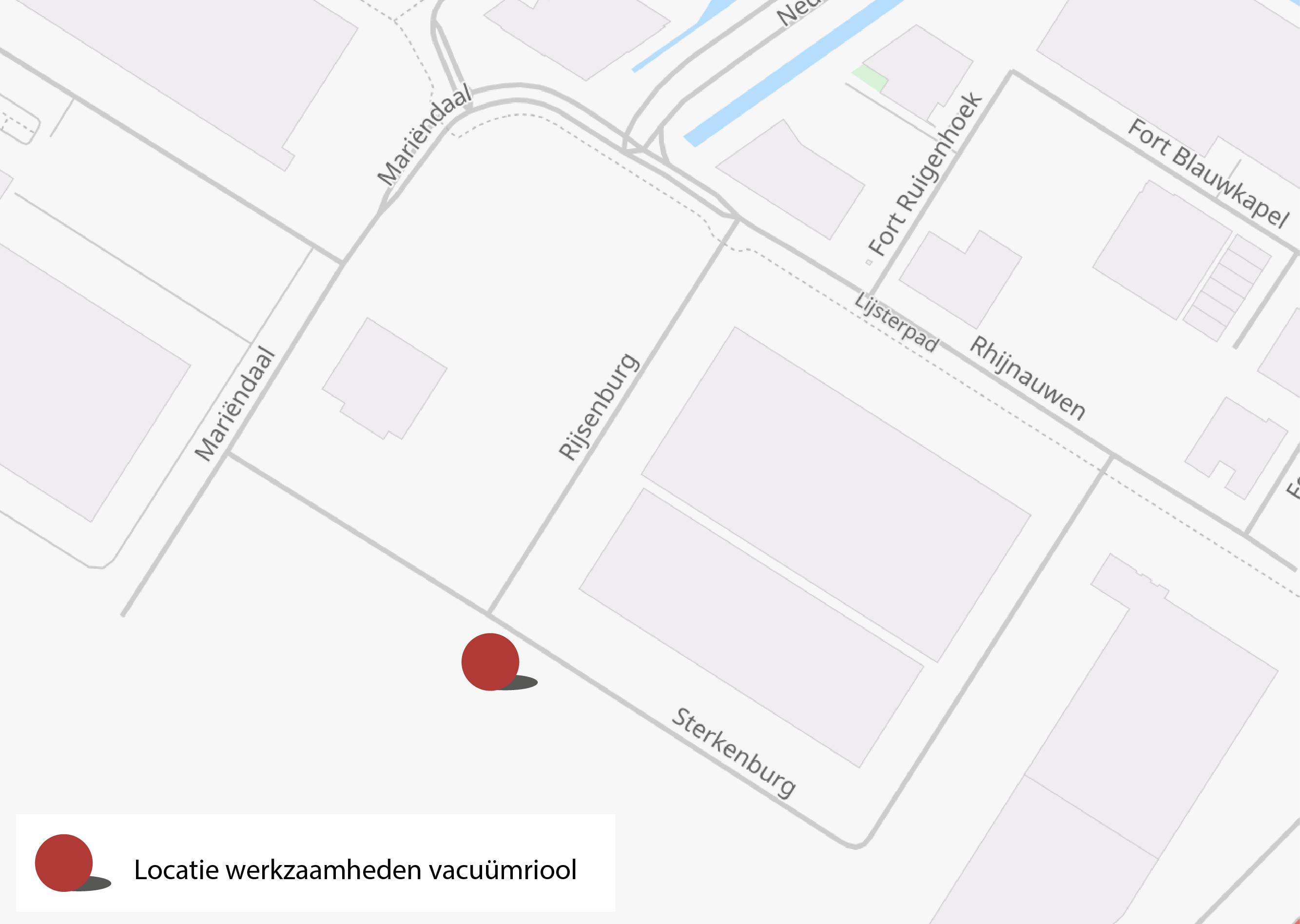 Wij zijn gestart met werkzaamheden voor het vacuümriool. Op de onderstaande afbeelding ziet u waar wij aan het werk zijn.